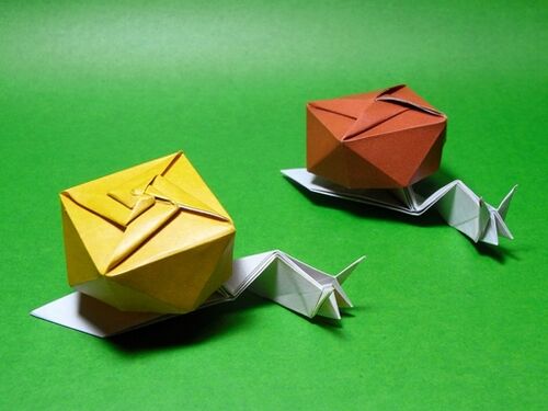 名古屋コンベンションで田中まさしさんが「タナカマイマイ」を講習されていたのを見て、カタツムリを作ってみたくなる。帰りの新幹線の中で考えていたらアイデアが浮かび、そのまま乗車中にできあがってしまった。 発想は、田中さんのが殻がリアル風(?)で…